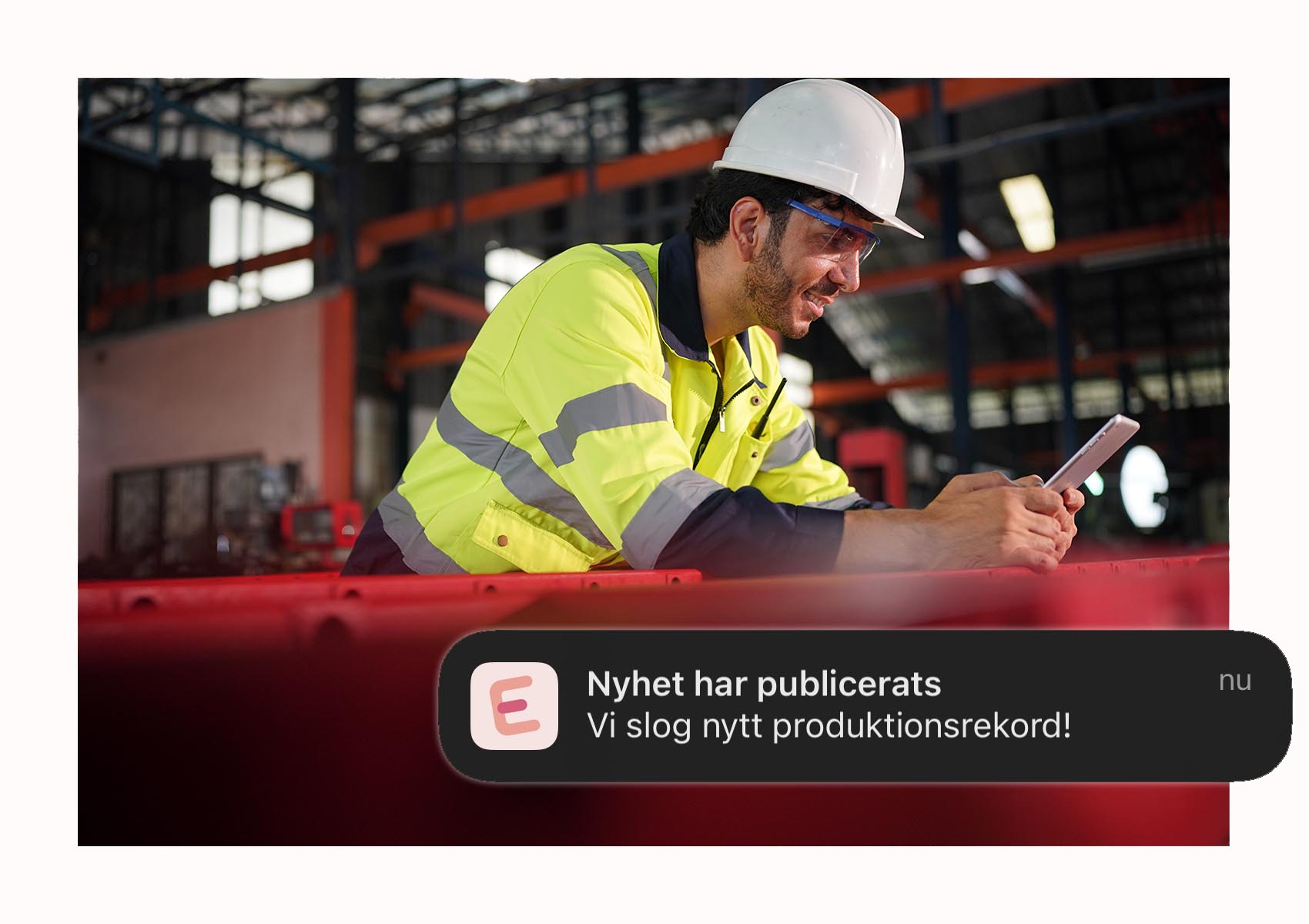 Easy Staff gör det enkelt för er att kommunicera med hela eller delar av företaget, oavsett om ni vill informera om uppdaterade säkerhetsrutiner eller bjuda in till företagsaktiviteter. Med pushnotiser och BankID säkerställer ni att alla smidigt och säkert kan ta del av informationen.